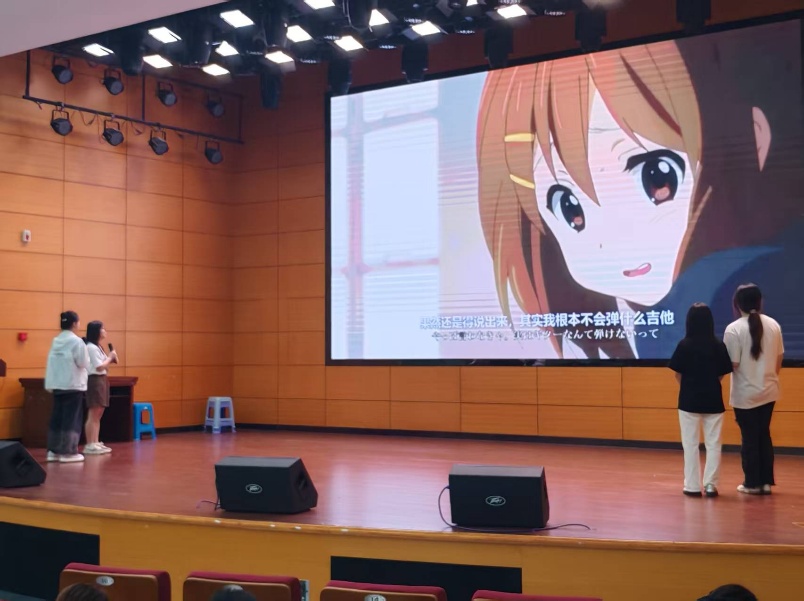 邹乃馨老师指导的课程组带来动画《轻音少女》片段的配音表演,同学们对“轻音部日常”的生动演绎让大家体会到配音乐趣的同时感悟同学们日语应用的进步。