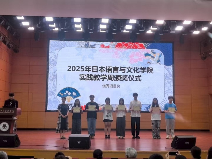 由日本语言与文化学院院长余逸文为项目成员代表颁奖。