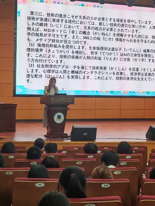 项目汇报最后是优秀作文分享环节,由陈逸佳同学分享并朗读作文《文系学部の存在は必要ですか》,让大家在作文的引导下思考文科处境的同时,感受到两周实践周课程后同学们写作能力的提升。