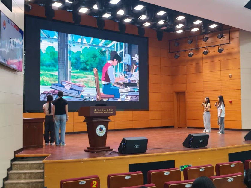 曾玉婷老师指导的课程组带来动画《跃动青春》片段的配音表演,同学们对人物的生动演绎让大家感受到学生时代的青春活力;