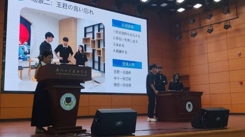洪雅琳老师和赵天宁老师指导的2023级《日语情景短剧》表演团队,短剧剧情贴近日本社会生活,表演生动自然,展现出队员们扎实的日语口语能力与舞台表现力的同时,感受日本人的日常言行与处世之道。