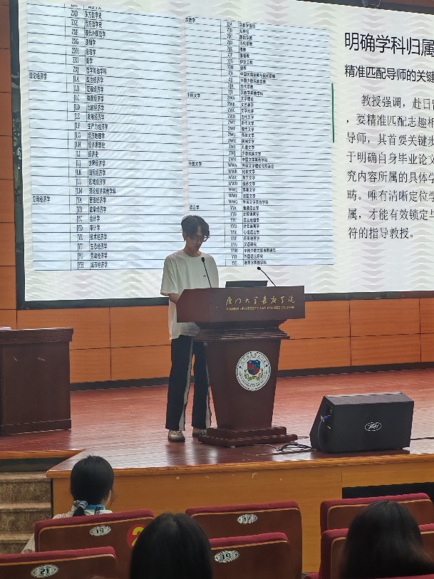 张麟声老师指导的《赴日升学指导》课程项目组由2022级郑云海汇报课程成果。郑云海同学分享到,有赴日升学想法的同学首先要明确自身学科的归宿,明确自身毕业论文的研究内容所属的具体学科范畴,进而有效锁定与之相符的指导教授。在选择导师时,要主动在院系网站了解到时的具体信息,主动研读导师的学术论文,理解导师的研究内容与特点,进而丰富自己的研究生申请书。