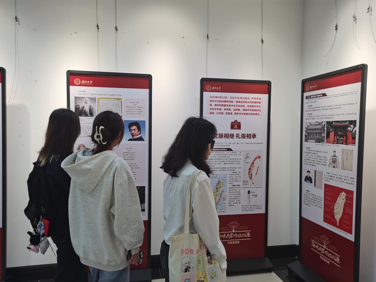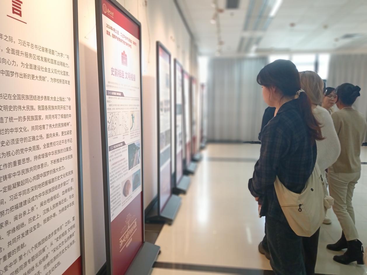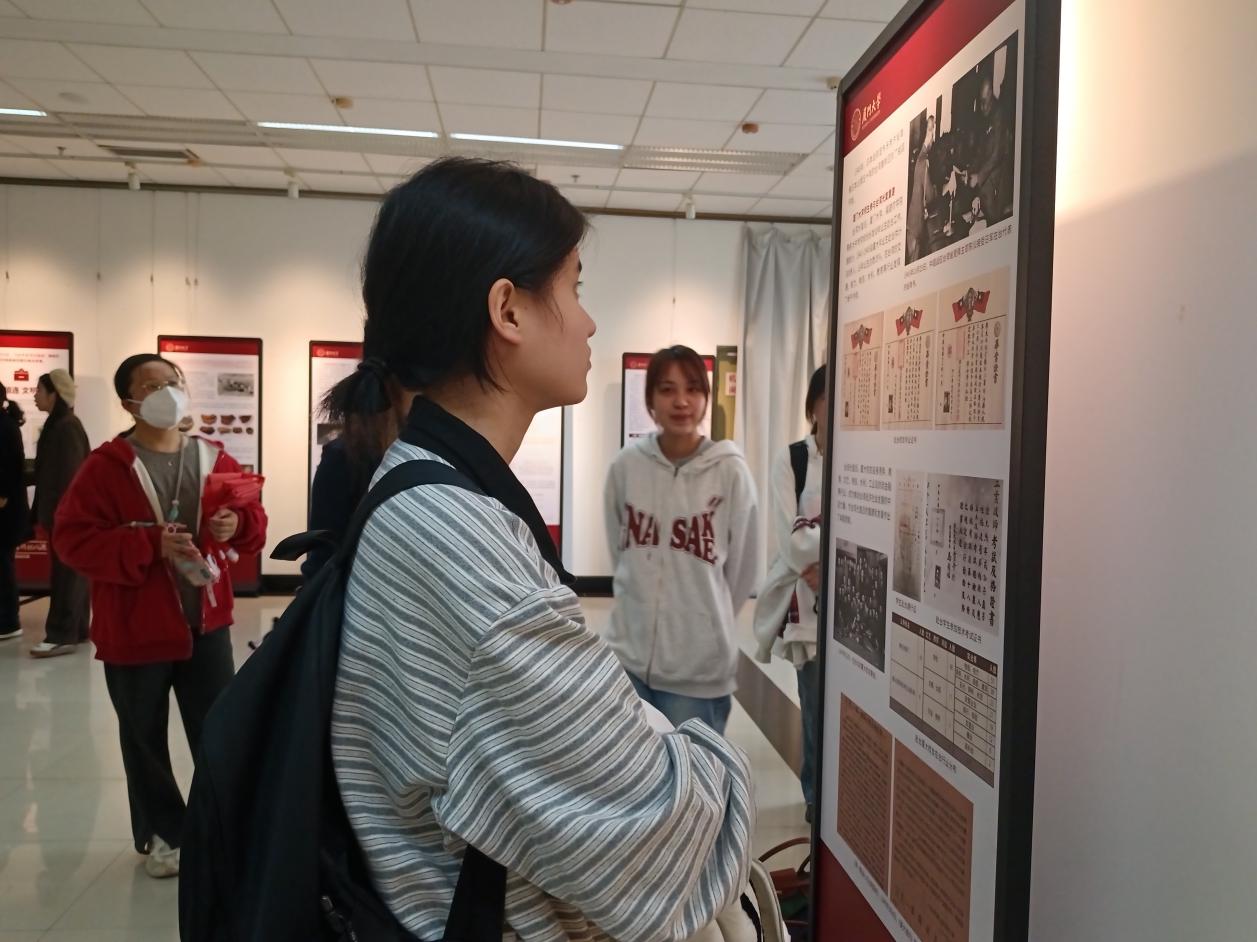 宣讲结束后,全体师生党员前往图书馆“海峡两岸同根同源”专题巡回展开展实地学习。参观过程中,党员们认真驻足观看每一幅珍贵图片、每一段详实文字资料,深入感悟海峡两岸一脉相承的历史渊源、密不可分的文化联结以及同胞手足血脉相连的深厚情谊,进一步增强了民族认同感、归属感和责任感。